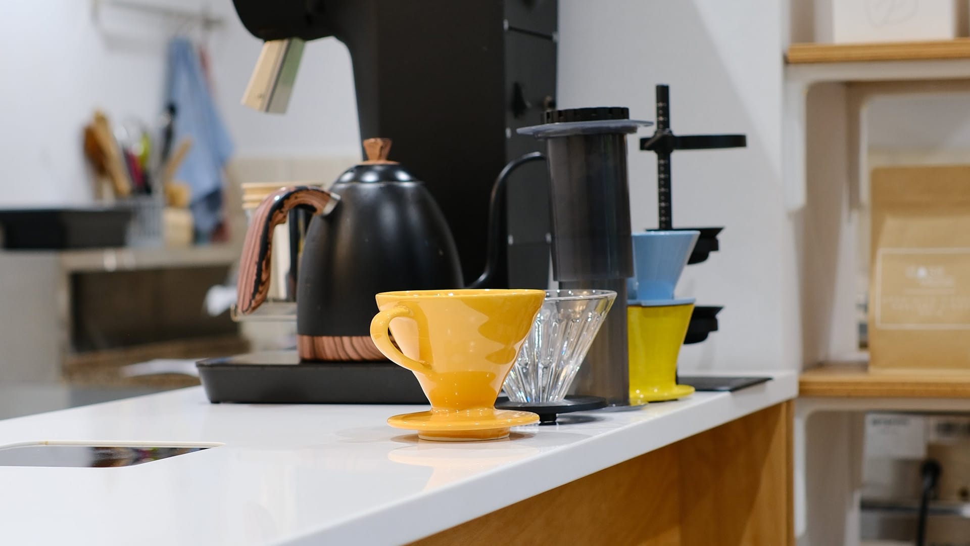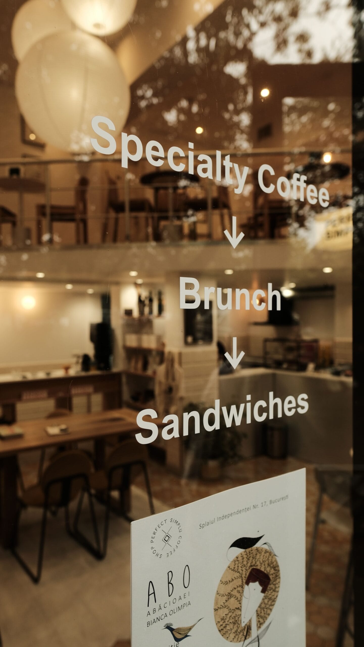 Iluminatul ambiental a fost ales cu grijă, contribuind la confortul vizual al clienților. Trei abajururi din hârtie de orez de la Hey, în diferite dimensiuni, creează o lumină caldă și difuză, în timp ce aplicele tip glob din zona brew bar-ului și de pe supantă pun în evidență zonele de interes ale cafenelei.